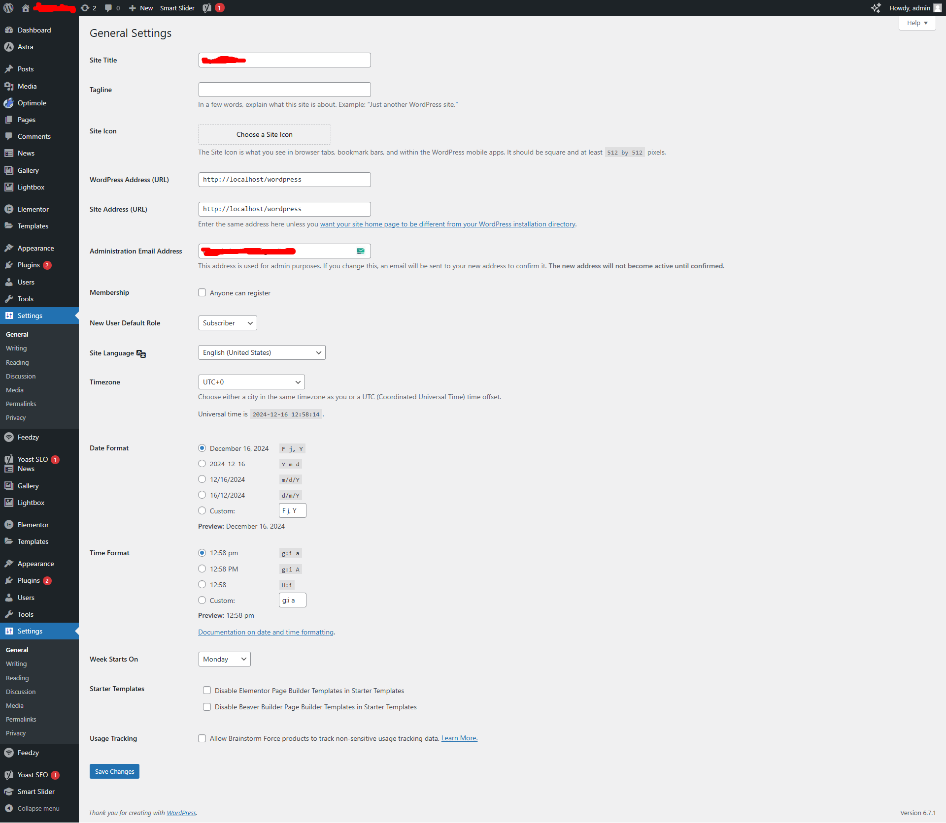 - Site Language: Sets the language for the WordPress dashboard.